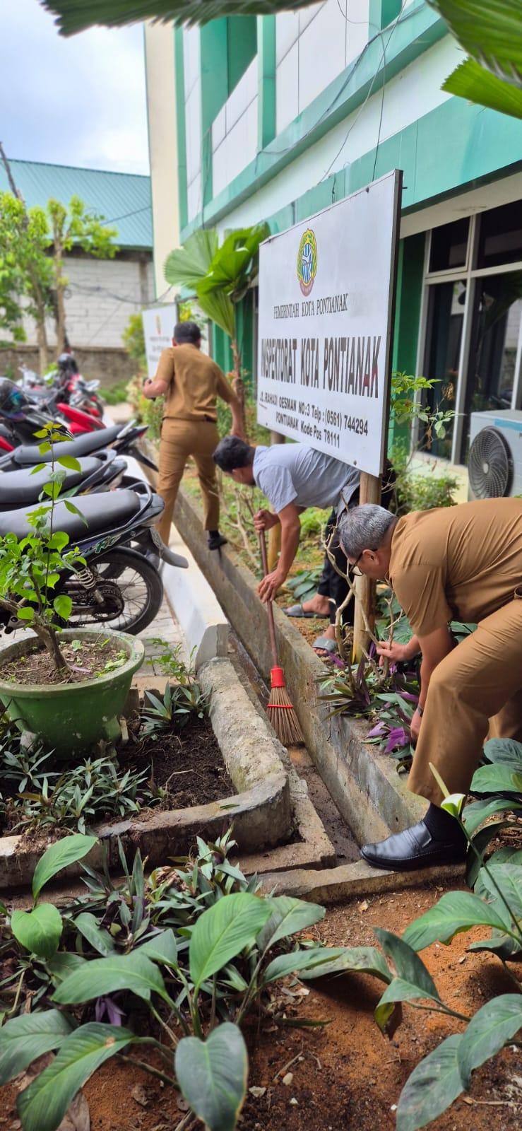 Pontianak - Dalam rangka mendukung Gerakan Indonesia ASRI (Aman, Sehat, Resik dan Indah), Badan Kepegawaian dan Pengembangan Sumber Daya Manusia (BKPSDM) Kota Pontianak melaksanakan kegiatan kerja bakti bersama di lingkungan kantor, pada Selasa dan Jumat pagi.