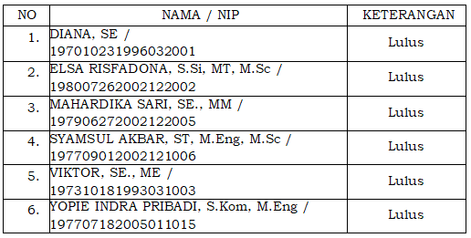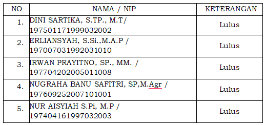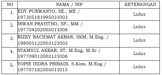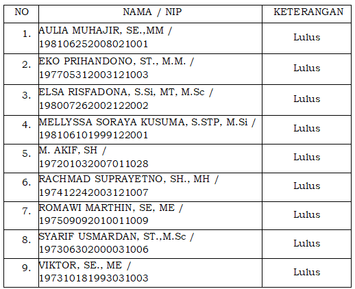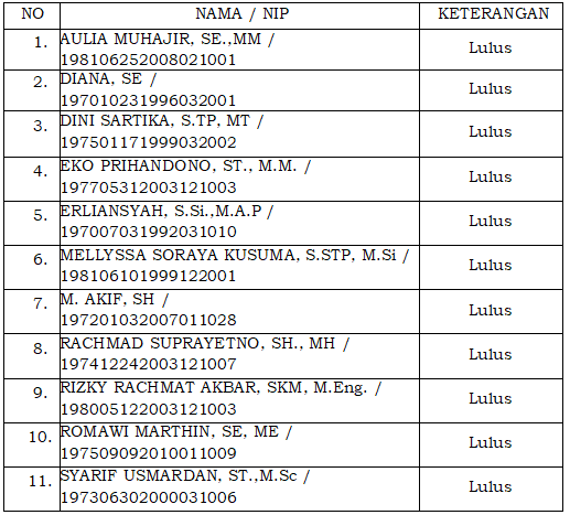 2. Peserta yang namanya dinyatakan Lulus seleksi administrasi dan berhak mengikuti tahapan Asesmen adalah sebagai berikut: